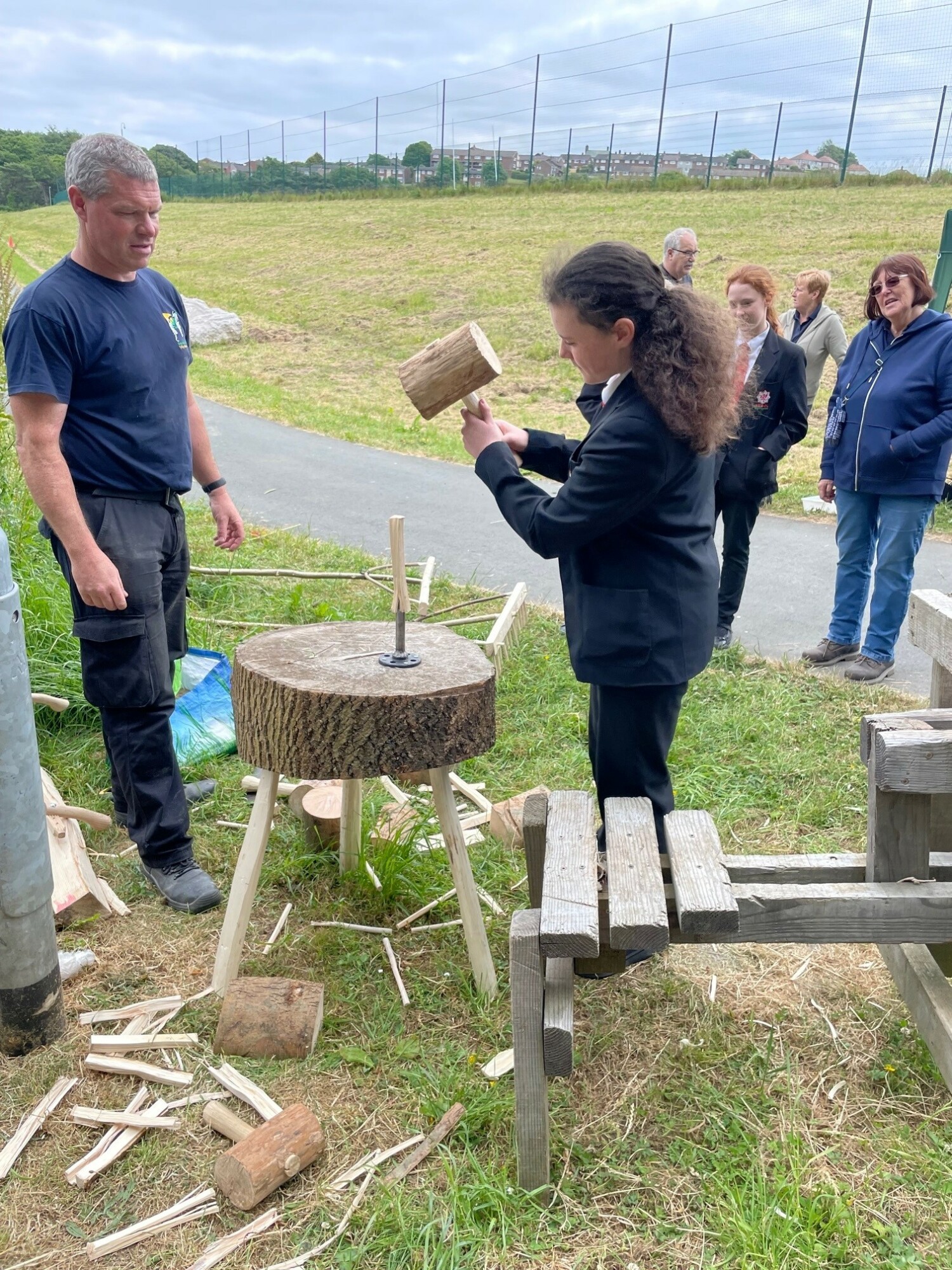 The School has been working with Greenfield Valley for the last two academic years to transform the landscape behind the school, along the Greenfield cycle path. During this time, our students have helped Holywell Town Council and Greenfield Valley employees to do all sorts of activities to improve the area, such as planting trees. This time, our school council members tidied up the area by collecting litter, planted wild flowers, took ratings of the wildlife in the area and helped make hay rakes.